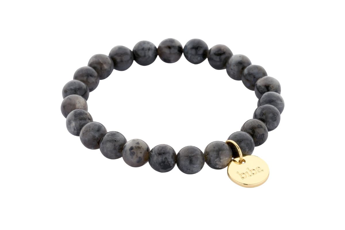 Biba Armband Naturstein Perlen Dunkelgrau 8mm Ø Biba Anhänger Gold
