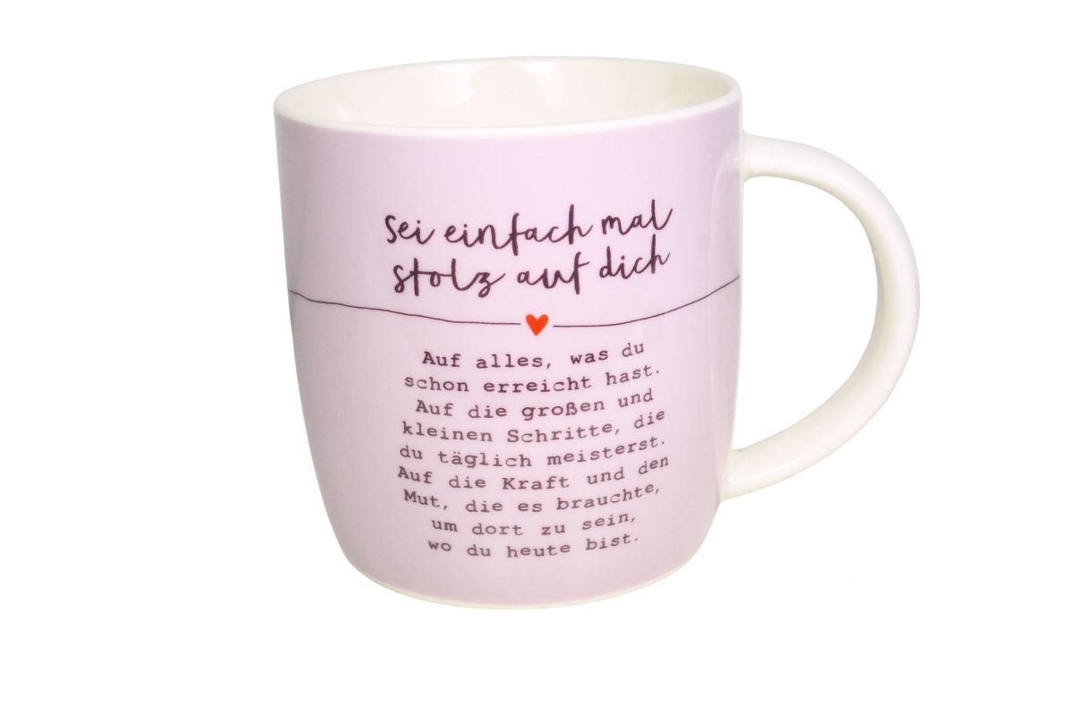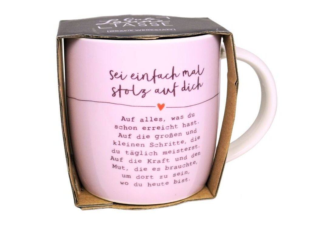 Grafik Werkstatt Henkelbecher Kaffeebecher Sprüchetasse Sei einfach mal stolz auf dich