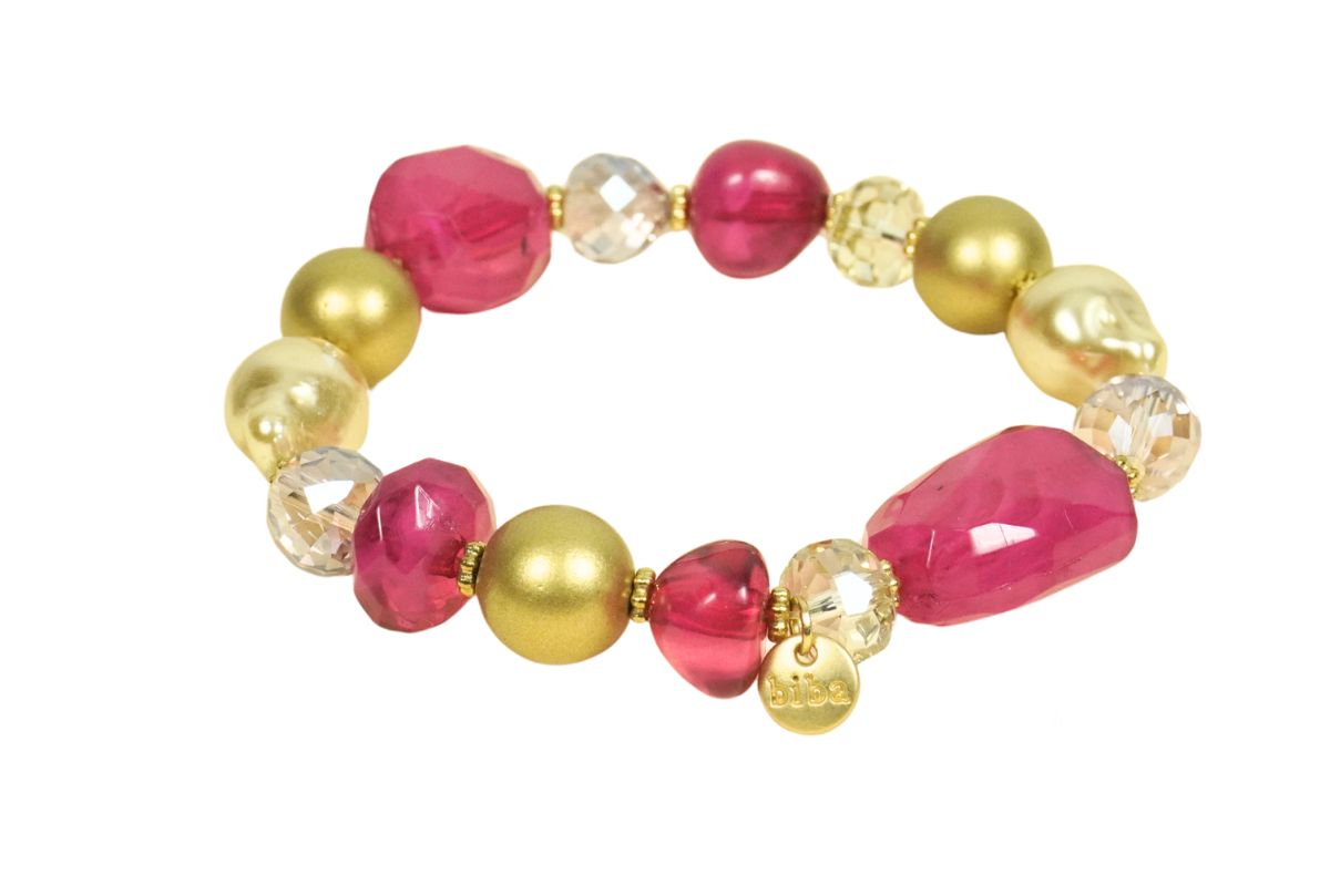 Biba Armband Polymer Perlen Mix Himbeerrot Gold Biba Anhänger Gold