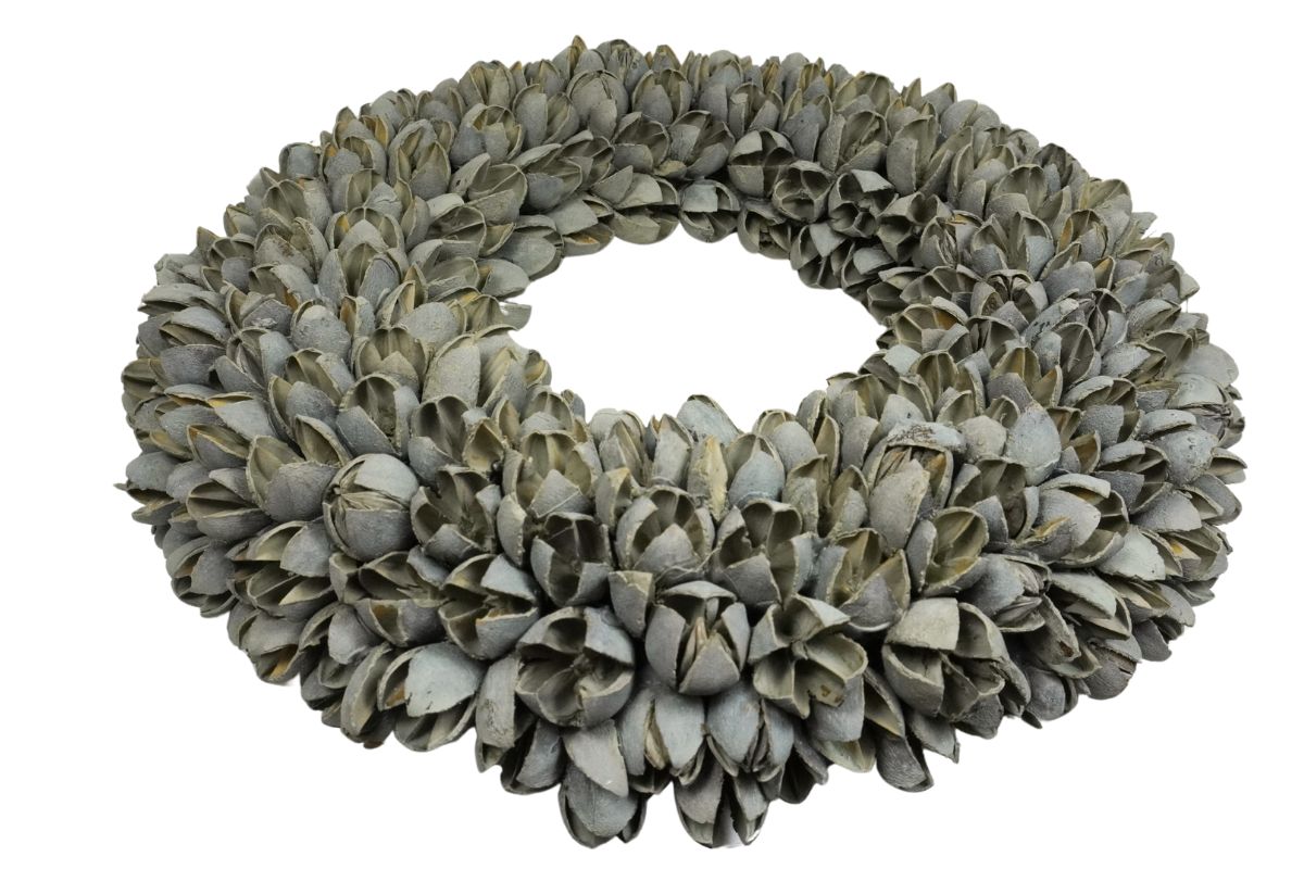 Die zarten Bakuli Fruits verleihen diesem Kranz eine sanfte Textur und eine natürliche Ausstrahlung, die jeden Raum in ein gemütliches Heim verwandelt. Ob an der Haustür, über dem Kamin oder als Mittelpunkt auf Ihrem Esstisch – dieser Kranz ist das perfekte Accessoire, um Ihren Wohnbereich auf stilvolle Weise zu verschönern.
