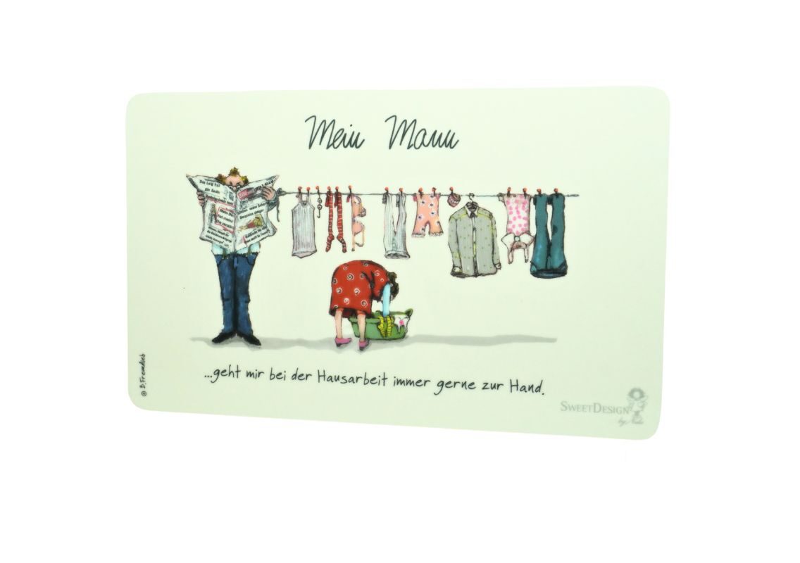 Design: Frühstücksbrettchen SweetDesign by Nala „Mein Mann geht mir bei der Hausarbeit immer gerne zur Hand“ B. Freundlieb