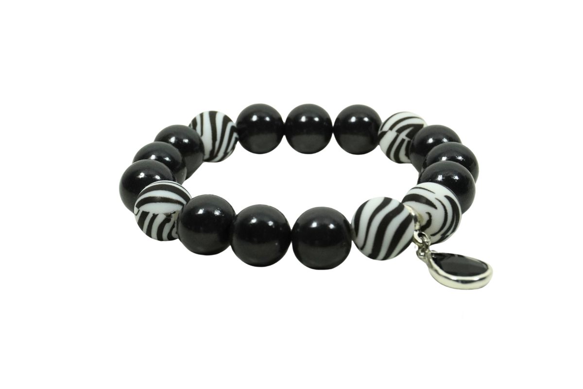 Mit seinen 12 mm großen Polymer-Perlen im angesagten Leo-Design in sanftem Streifenmuster ist dieses Schmuckstück ein echter Hingucker. Der edle Anhänger in Schwarz mit feinem Silberrand verleiht dem Armband einen femininen Glanz und rundet den Look stilvoll ab.