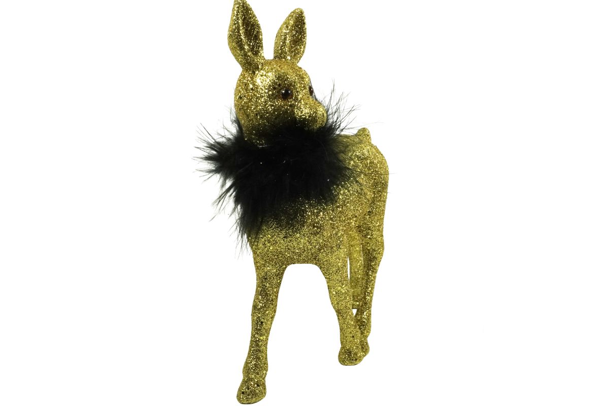 ∗∗ Design: Werner Voß Rehkitz mit schwarzer Federboa und Gold-Glitter Dekofigur