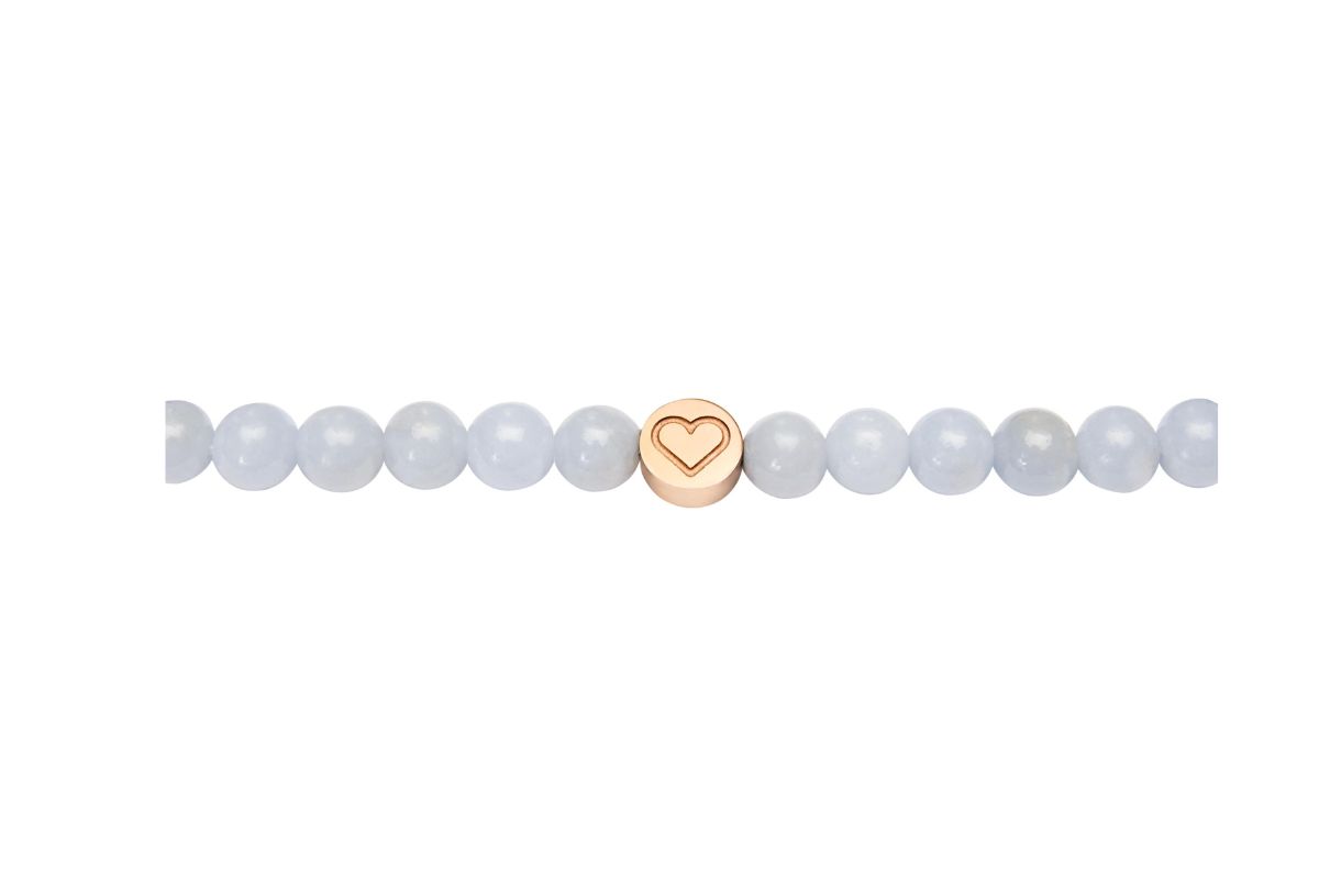 Zart, harmonisch und voller Bedeutung: Das H.C.A. Joyful Spirit Armband vereint die himmlisch-blauen Angelit-Edelsteine mit einem liebevoll gestalteten rosévergoldeten Herzchen – ein Symbol für Mitgefühl, Verbindung und inneren Frieden.