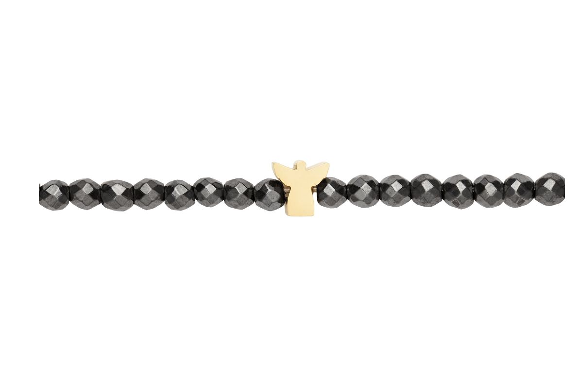 Entdecke unser zartes Armband mit facettierten Hämatit-Perlen in edlem Grau – stilvoll, dezent und doch ein echter Hingucker. Die schimmernden Hämatite symbolisieren Erdung und innere Stärke, während der vergoldete Mini-Engel charmant an deinem Handgelenk wacht.