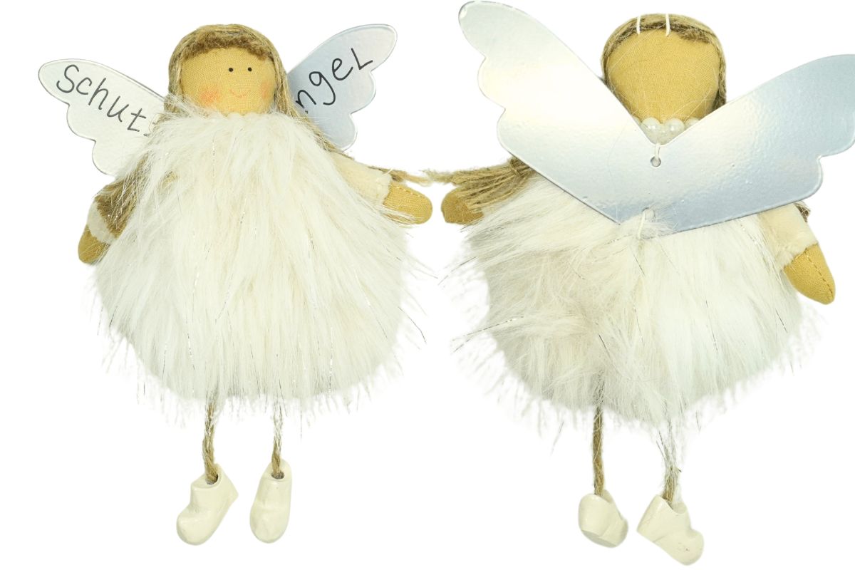 ∗Design: Baden Schutzengel Aufhänger Deko Engel Fellkleidchen Weiß Silber