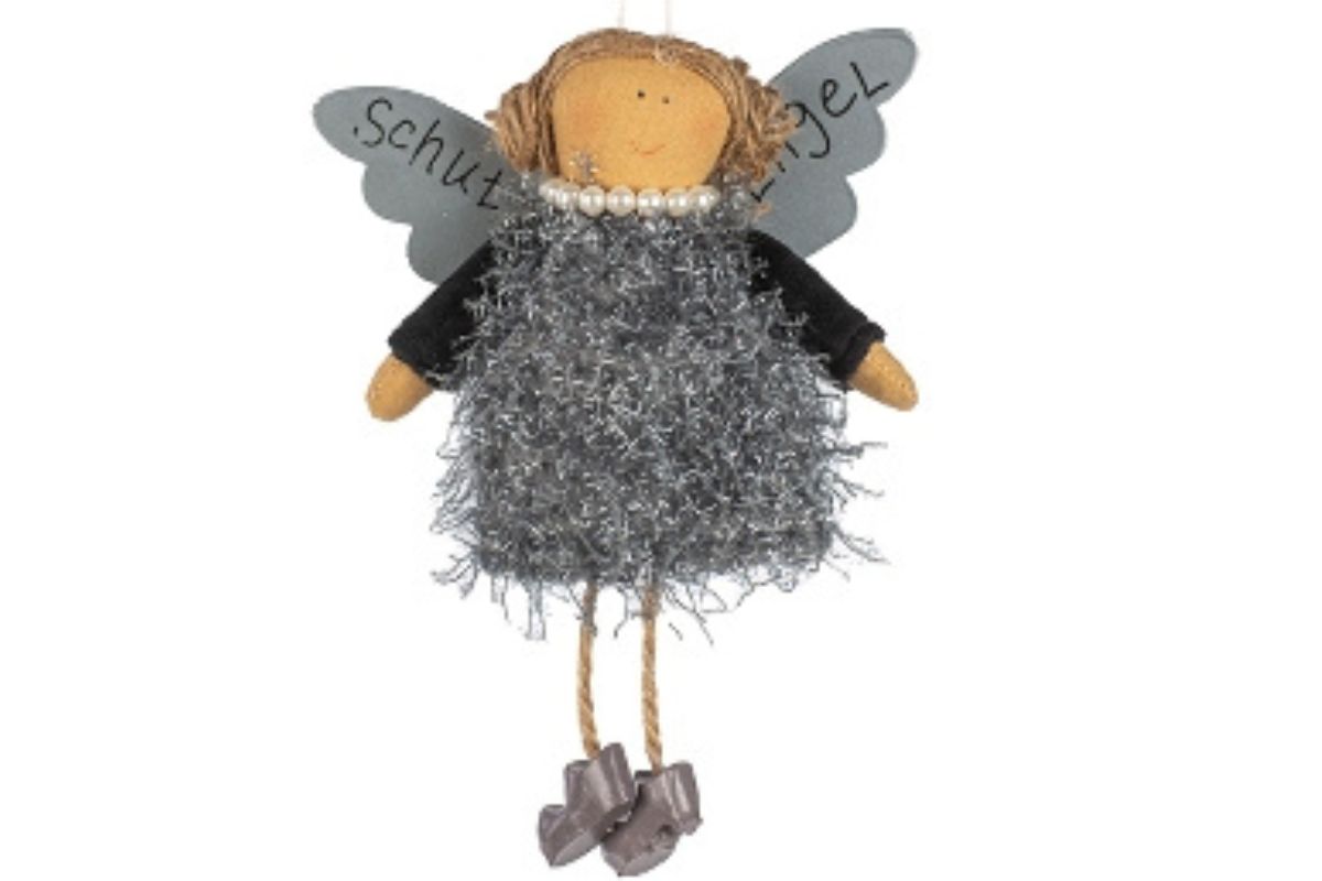 Baden Schutzengel Aufhänger Deko Engel Glitterkleidchen Grau
