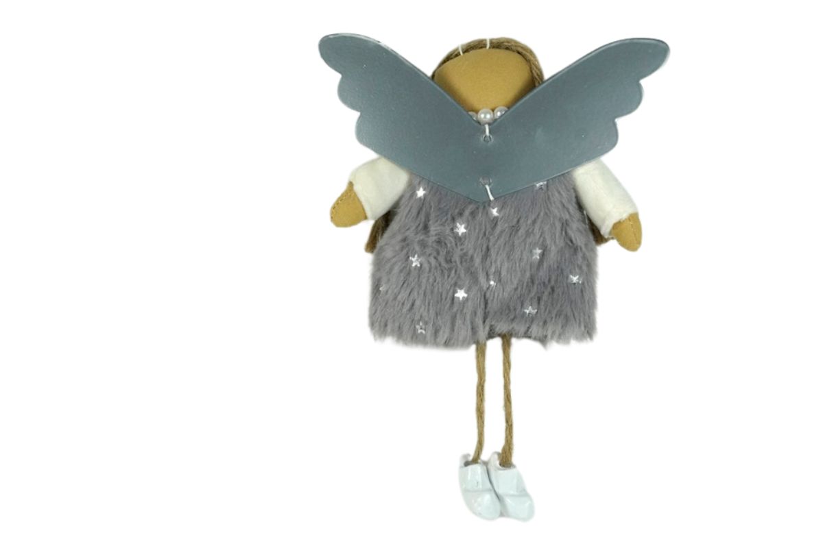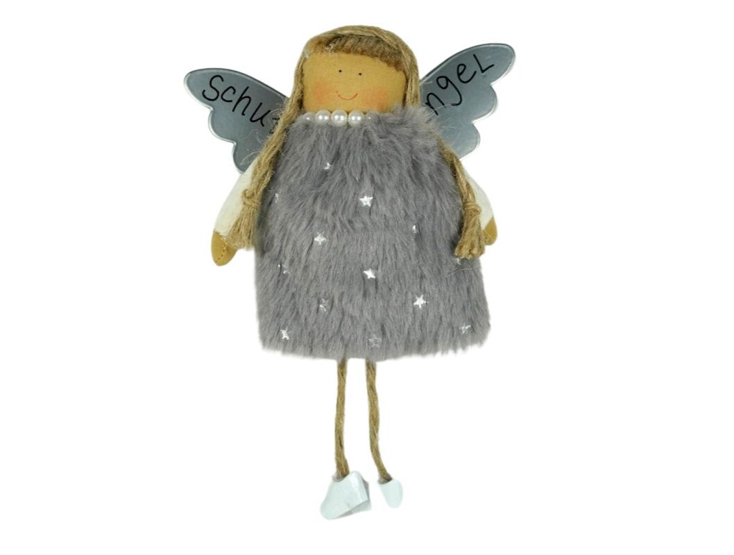 Baden Schutzengel Aufhänger Deko Engel im Plüschkleidchen Grau Jacky