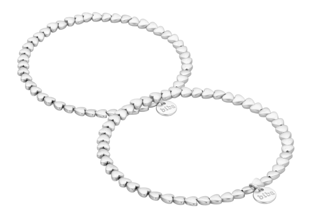 Biba Armband „Heart to Heart“ Matt Silber Anhänger Matt Silber