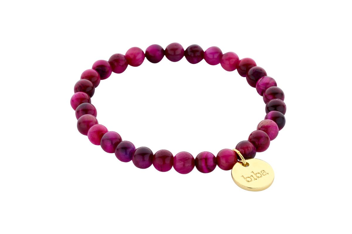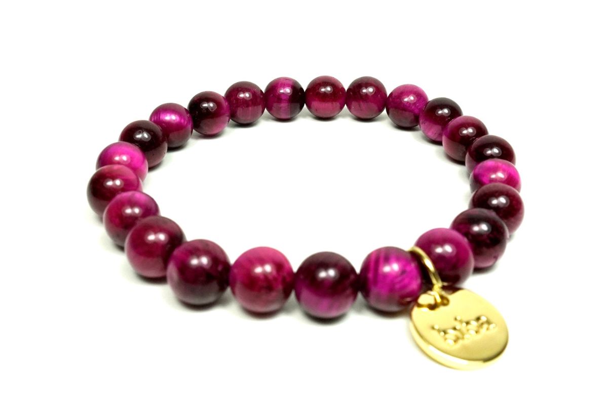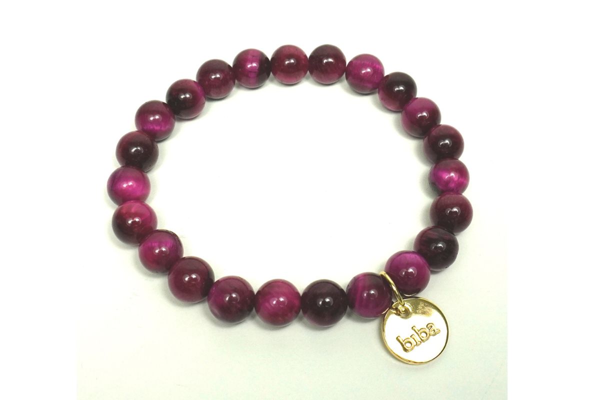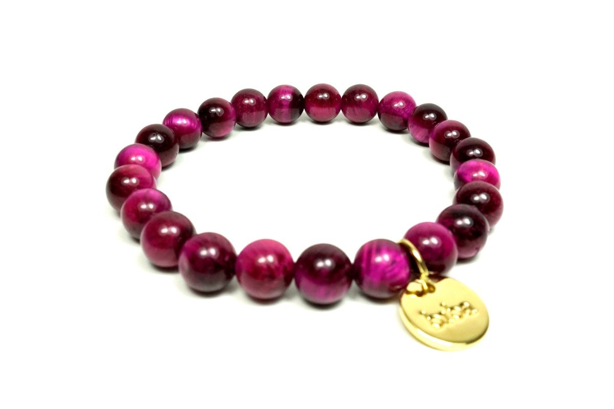 Biba Armband Naturstein Fuchsia Tigerauge Perlen 8mm Ø Biba Anhänger Gold