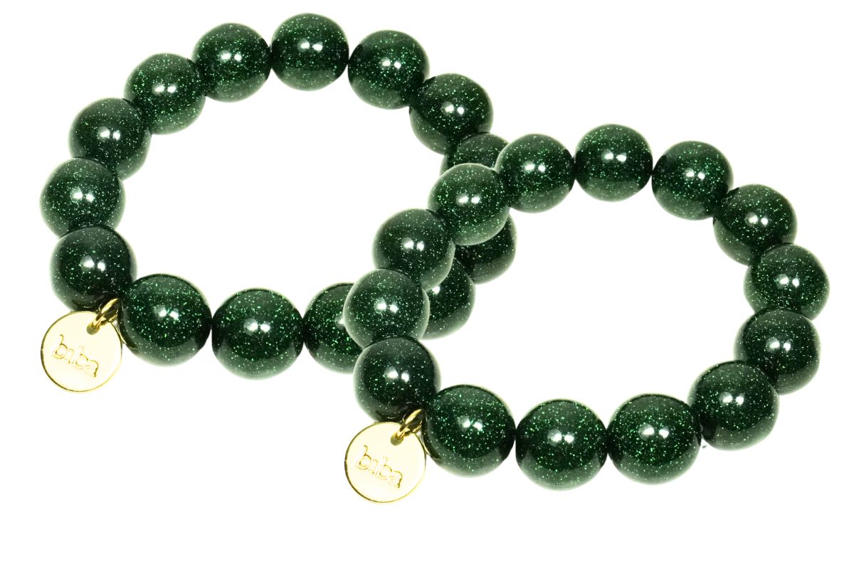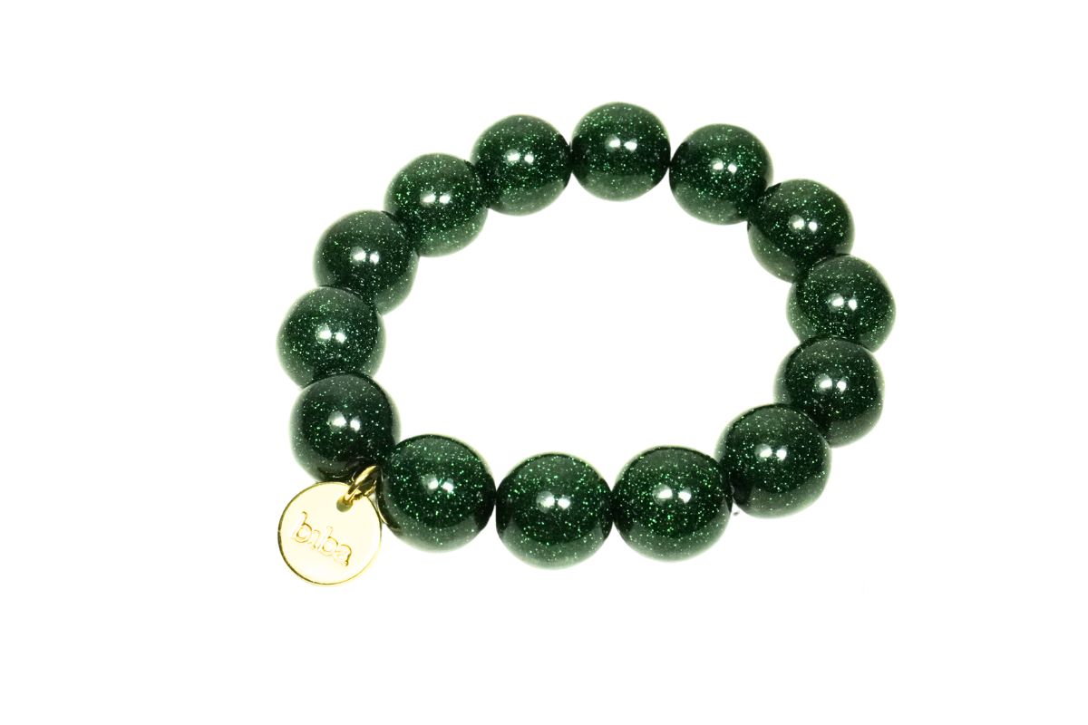 Biba Armband Polymer Perlen Schimmer Grün 14mm Ø Biba Anhänger Gold