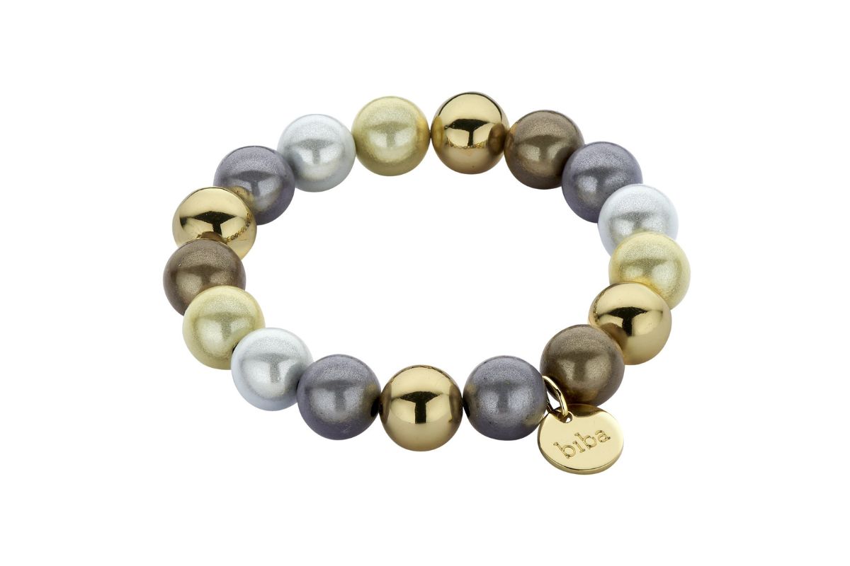 Biba Armband Polymerperlen Grau Gold 12mm Ø Anhänger Gold