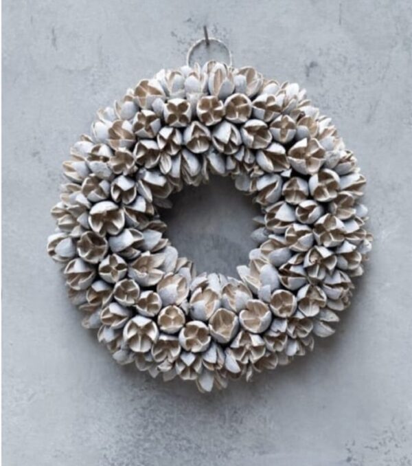 Die zarten Bakuli Fruits verleihen diesem Kranz eine sanfte Textur und eine natürliche Ausstrahlung, die jeden Raum in ein gemütliches Heim verwandelt. Ob an der Haustür, über dem Kamin oder als Mittelpunkt auf Ihrem Esstisch – dieser Kranz ist das perfekte Accessoire, um Ihren Wohnbereich auf stilvolle Weise zu verschönern.