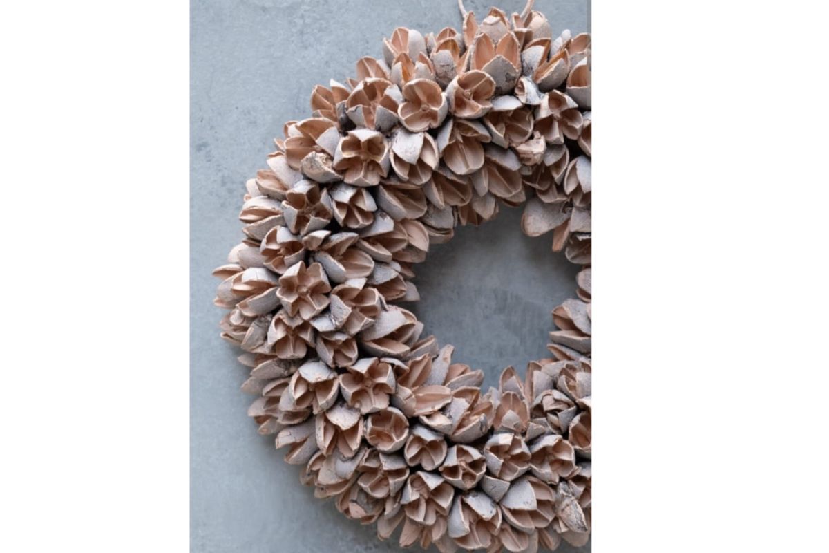 Die zarten Bakuli Fruits verleihen diesem Kranz eine sanfte Textur und eine natürliche Ausstrahlung, die jeden Raum in ein gemütliches Heim verwandelt. Ob an der Haustür, über dem Kamin oder als Mittelpunkt auf Ihrem Esstisch – dieser Kranz ist das perfekte Accessoire, um Ihren Wohnbereich auf stilvolle Weise zu verschönern.