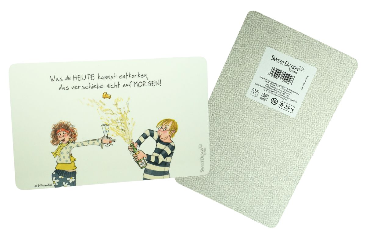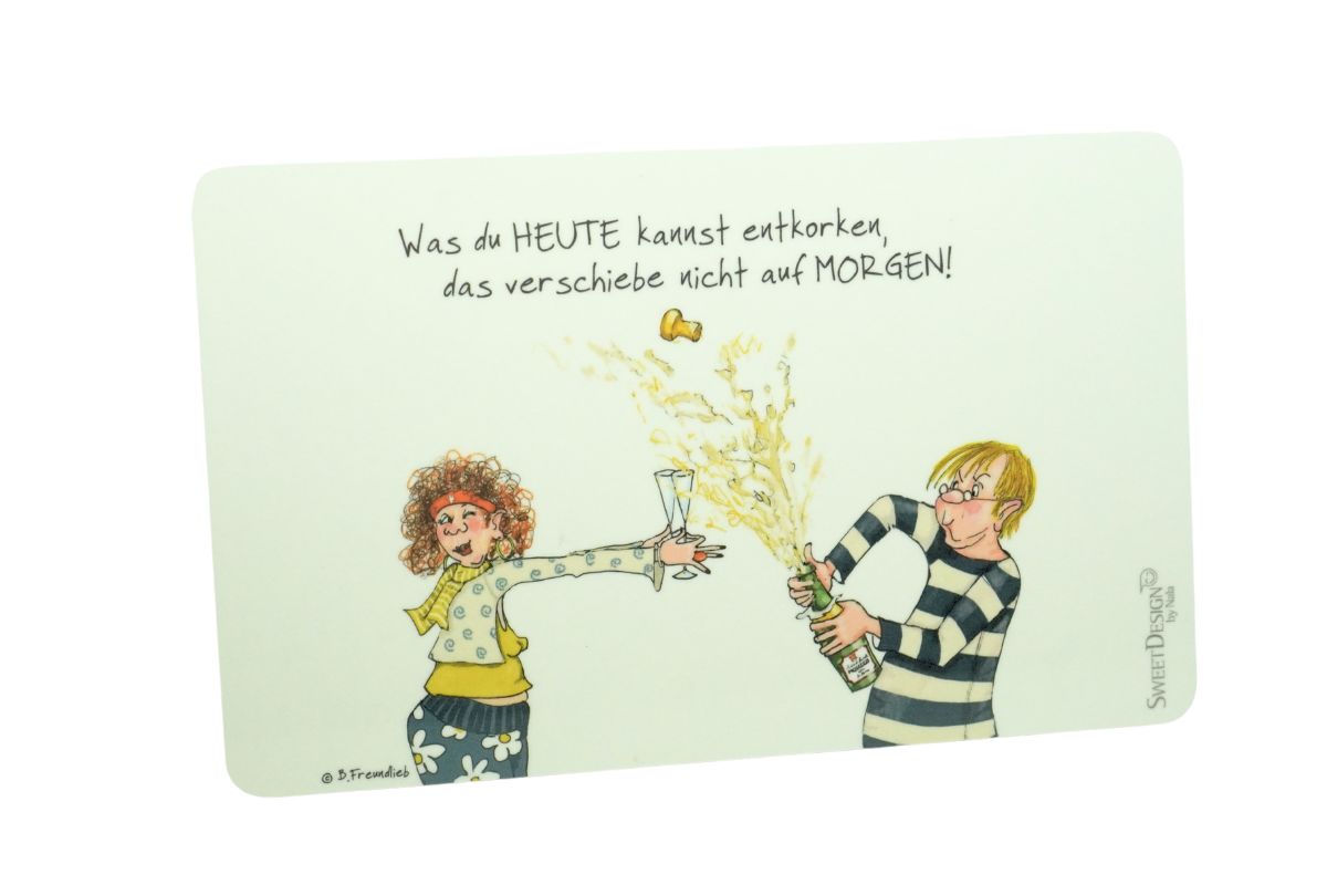 Frühstücksbrettchen SweetDesign by Nala „Was du Heute kannst entkorken, das verschiebe nicht auf Morgen! “ B. Freundlieb