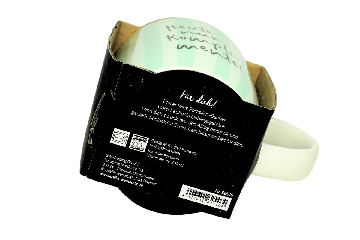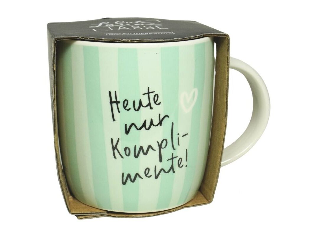 Grafik Werkstatt Henkelbecher Kaffeebecher Sprüchetasse Heute nur Komplimente!
