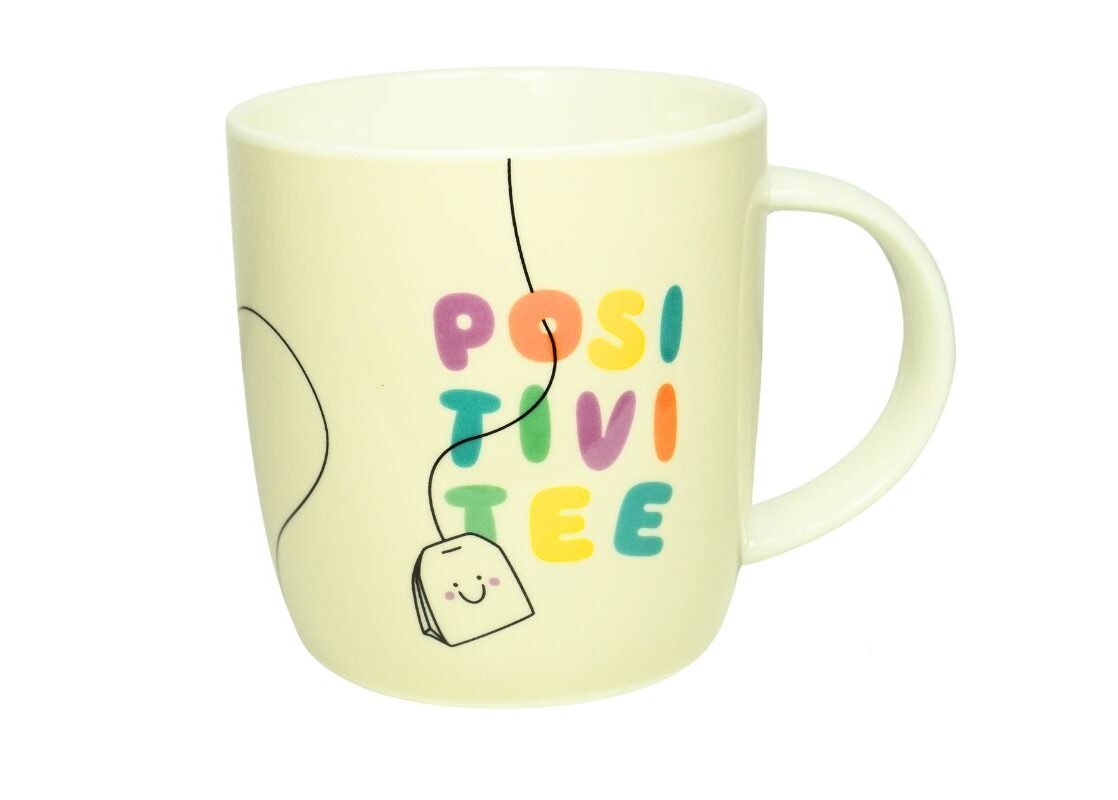 Grafik Werkstatt Henkelbecher Kaffeebecher Sprüchetasse POSI TIVI TEE