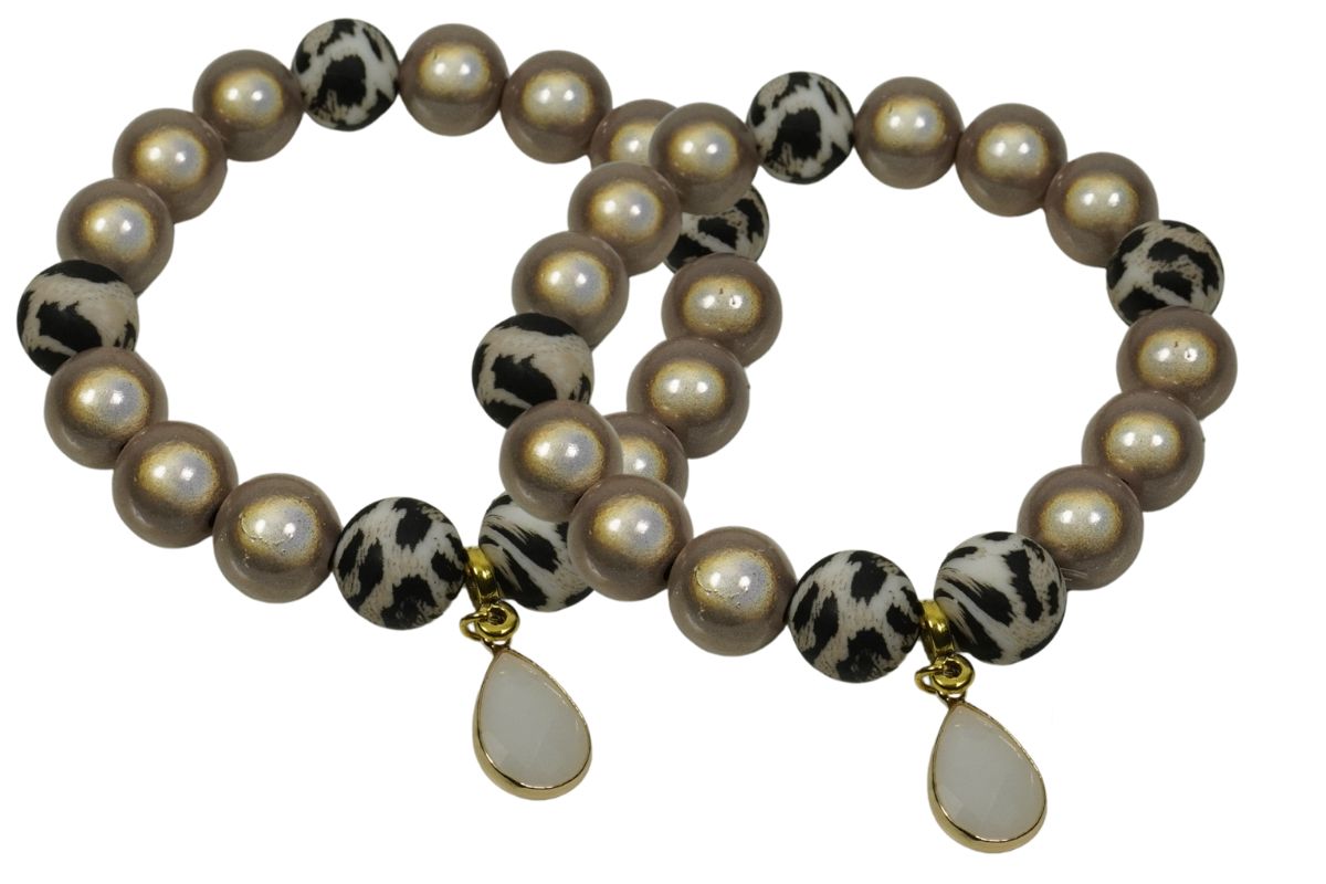 Mit seinen 12 mm großen Polymer-Perlen im angesagten Leo-Design ist dieses Schmuckstück ein echter Hingucker. Der edle Anhänger mit feinem Goldrand verleiht dem Armband einen femininen Glanz und rundet den Look stilvoll ab.