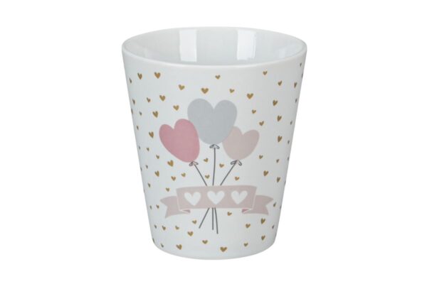 Ein Becher voller Leichtigkeit und Liebe! Dieser zauberhafte Krasilnikoff Mug ist mit bunten Herz-Luftballons und kleinen goldenen Herzchen verziert – ein fröhlicher Hingucker, der gute Laune in jeden Tag bringt.