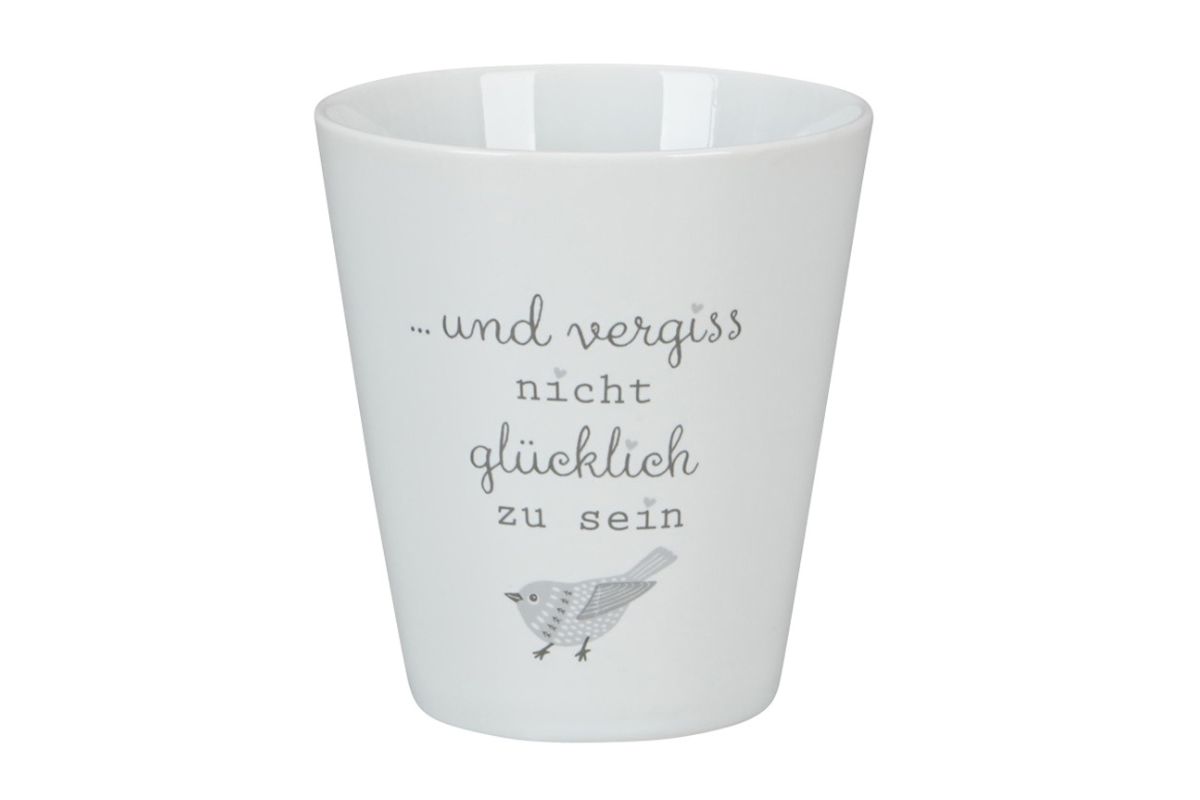 Krasilnikoff Kaffeebecher Sprüche Tasse Mug Cup „und vergiss nicht glücklich zu sein“