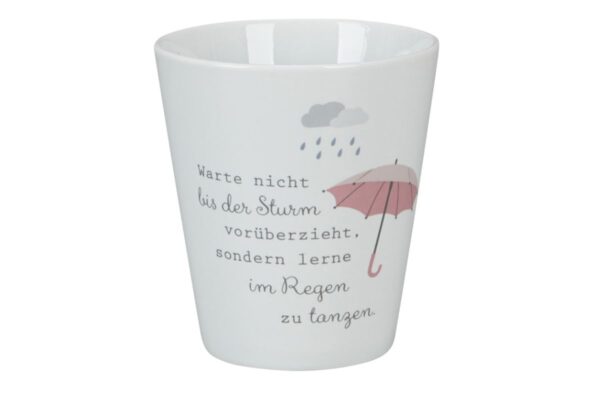 Krasilnikoff Kaffeebecher – „Warte nicht, bis der Sturm vorüberzieht, sondern lerne, im Regen zu tanzen“