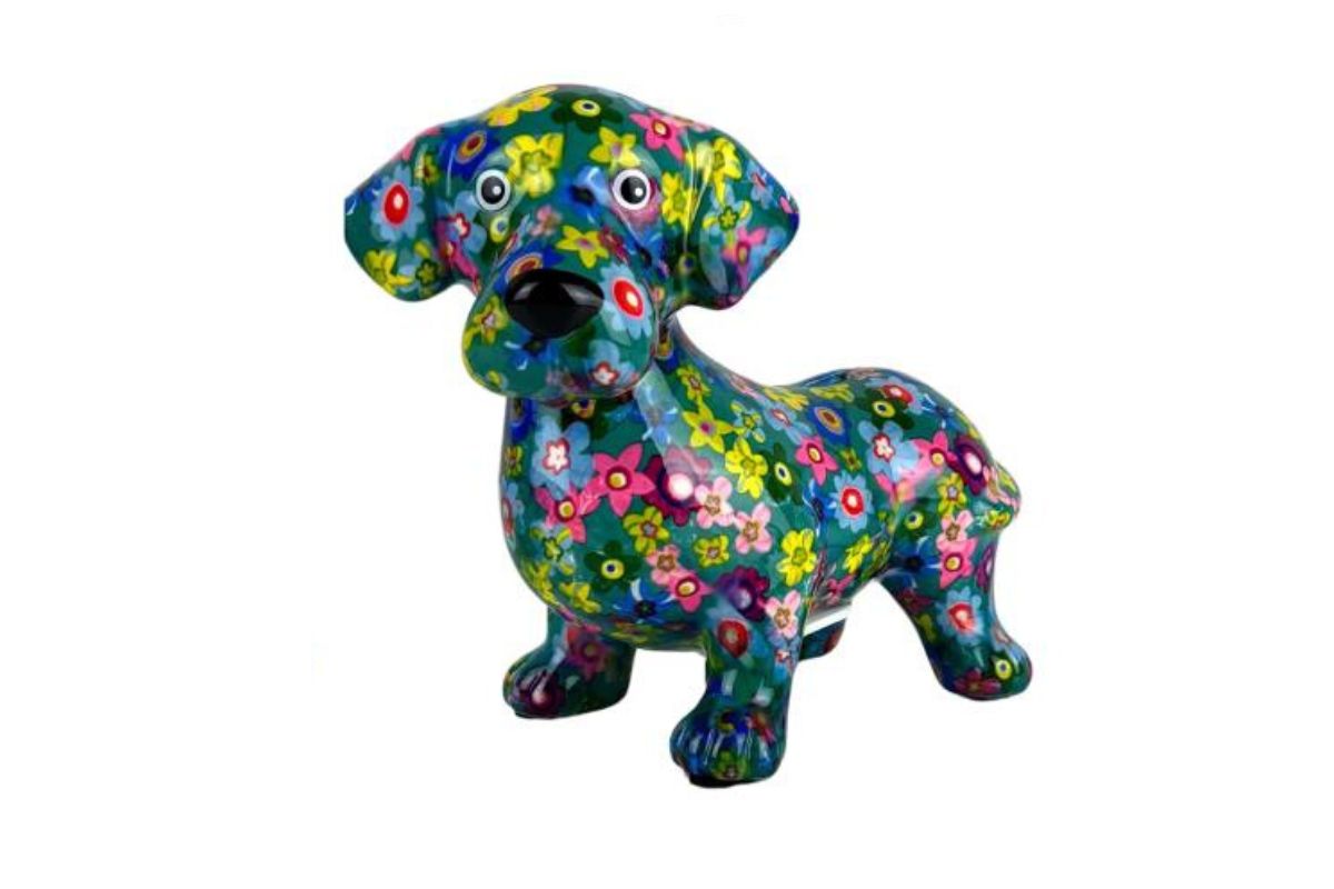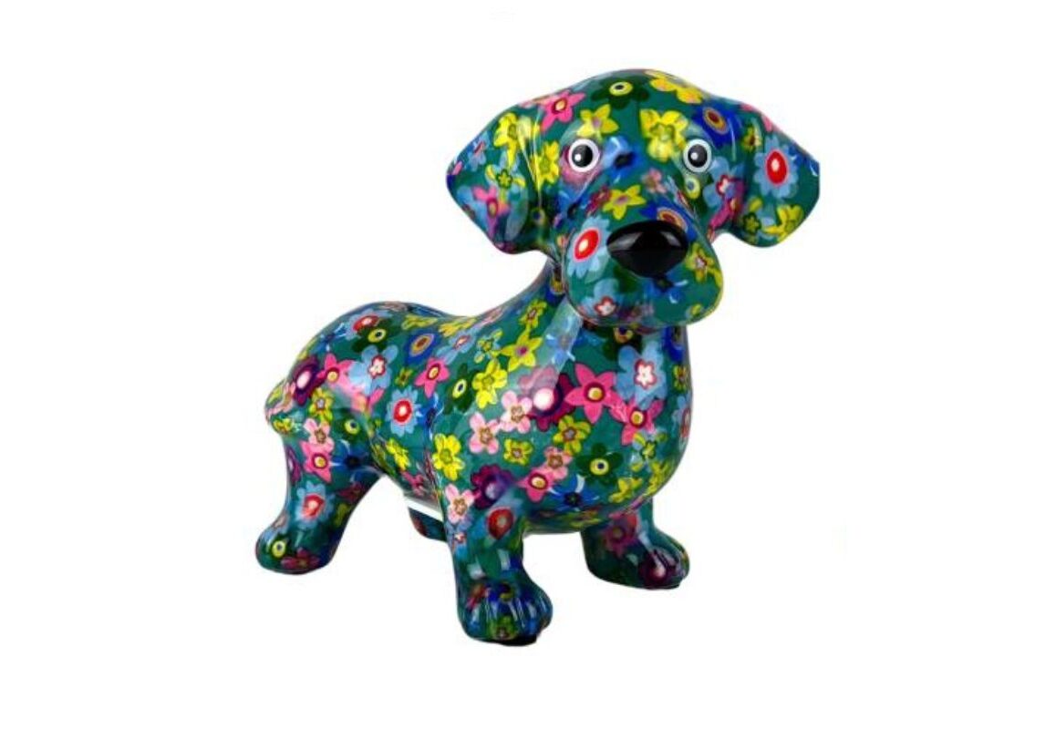 Design: Pomme Pidou Spardose Spartier Money Bank Dackel Dennis Blue Flower Design N