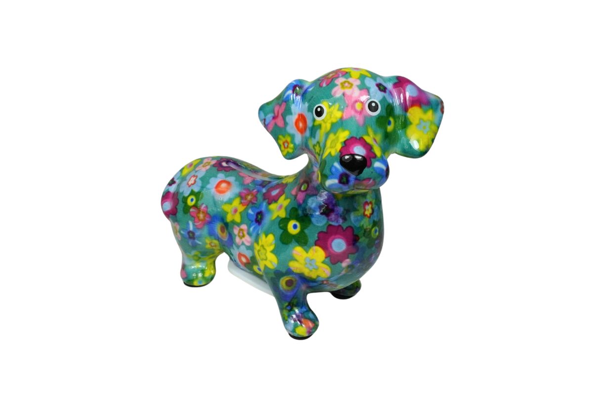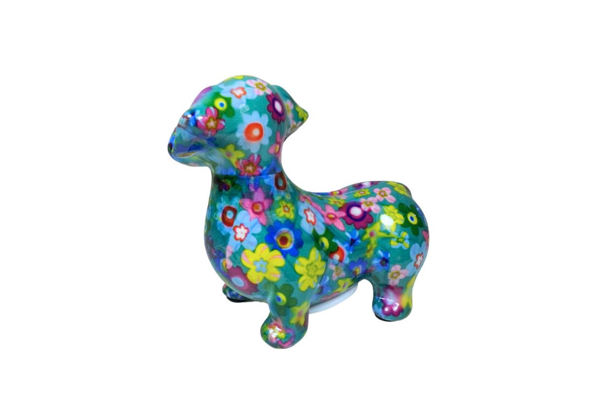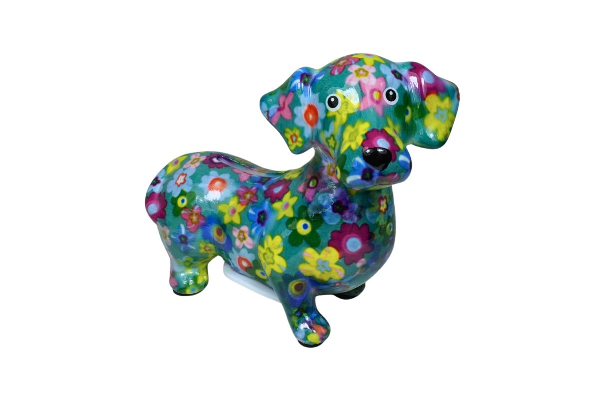 Design: Pomme Pidou Spardose Spartier Money Bank Dackel Dennis Blue Flower Design S
