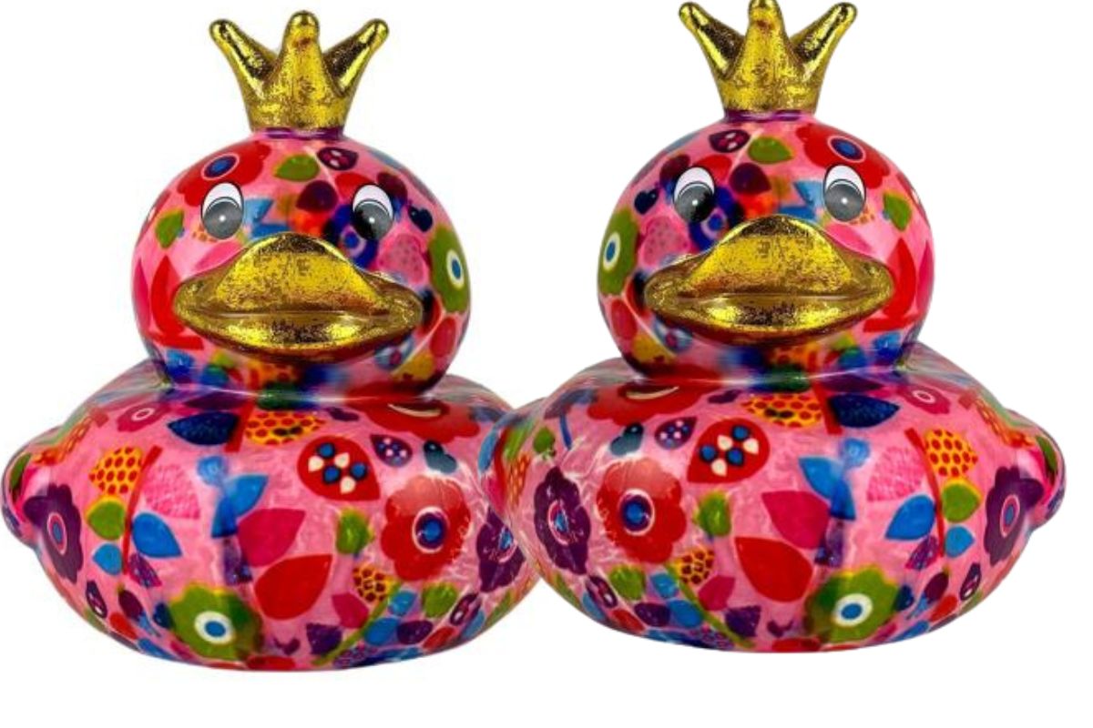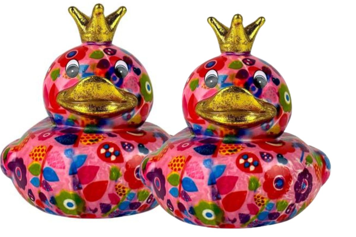 Design: Pomme Pidou Spardose Spartier Money Bank Ente Ducky Big Flower Rose Gr. N