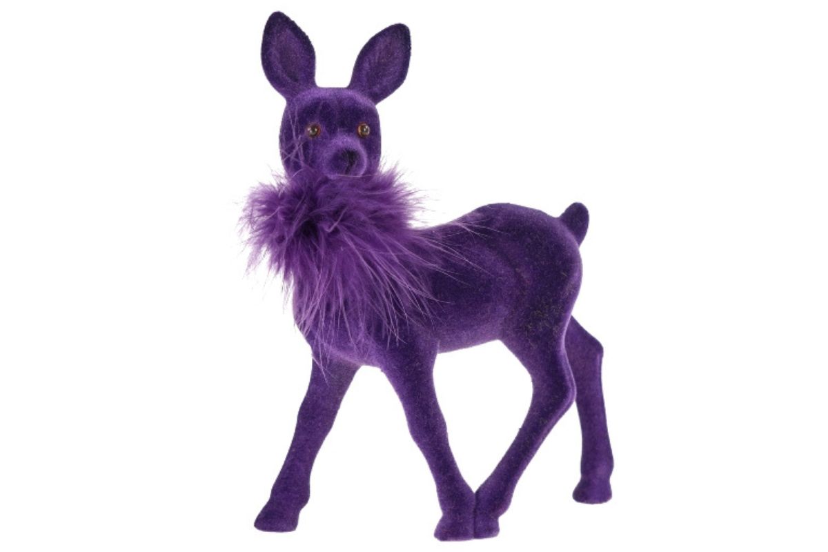 Dieses Rehkitz von Werner Voß bringt Glanz und Extravaganz in Ihre Dekoration! Verziert mit einer edlen violetten Federboa vereint die Figur verspielten Charme mit einem Hauch von Luxus.